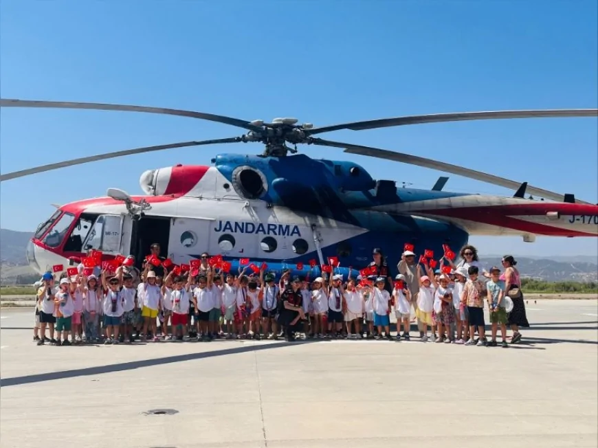 Aydın’ın Efeler ilçesinde bulunan Kübra Efe Anaokulu öğrencileri, Aydın İl Jandarma Komutanlığı Aile İçi Şiddetle Mücadele ve Çocuk Kısım Amirliği’nin koordinesinde Jandarma Helikopter Filo Komutanlığı’nı ziyaret etti.