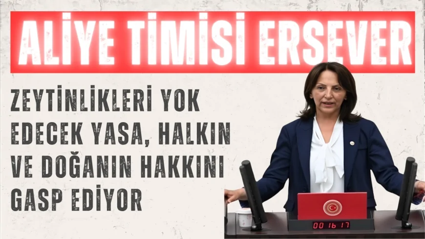 CHP Ankara Milletvekili Aliye Timisi Ersever, Türkiye Büyük Millet Meclisi Genel Kurulu’nda yaptığı konuşmada, zeytinlik alanları ve doğal yaşamı tehdit eden yasa teklifine sert tepki gösterdi. Görüşülmekte olan teklifin 12’nci maddesi üzerine söz alan Ersever, düzenlemenin “vahşi madenciliğe kapı araladığını” ifade etti.