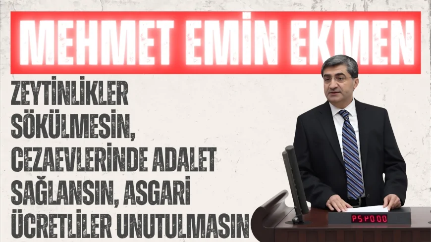 DEVA Partisi Genel Başkan Yardımcısı ve Mersin Milletvekili Av. Mehmet Emin Ekmen, TBMM Genel Kurulu’nda yaptığı konuşmada çeşitli sosyal, ekonomik ve hukuki sorunları gündeme taşıdı. Ekmen, hem emek dünyasına dair talepleri hem de cezaevi uygulamalarını ve tarım politikalarını ele aldı.