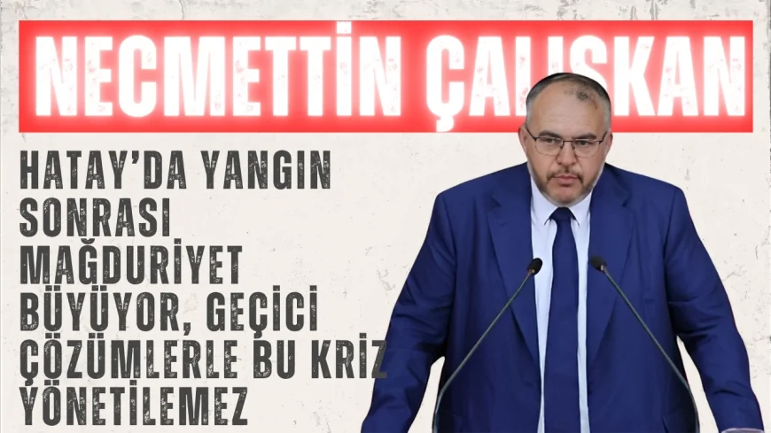Saadet Partisi Hatay Milletvekili Doç. Dr. Necmettin Çalışkan, 2 Temmuz 2025 tarihinde TBMM Genel Kurulu’nda yaptığı konuşmada, deprem bölgesi Hatay’da yaşanan yangına ve sonrasındaki toplumsal etkilerine dikkat çekti. Yangının geniş bir alana yayılmasıyla birçok köylünün mağdur olduğunu belirten Çalışkan, bölge için özel önlem ve kaynak çağrısı yaptı.